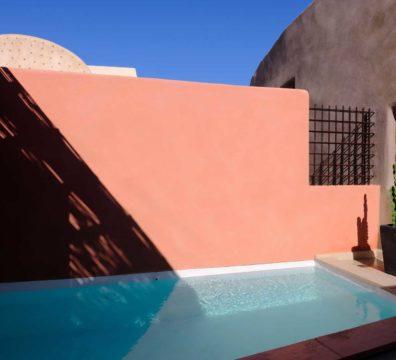With a total of 40 sq.m. space, It features an ample open plan with a large bedroom with a separate comfortable living room that can easily accommodate two more guests. The outdoor patio offers ample space for sunbathing, relaxing and daydreaming. The private pool is the perfect way to cool off on a hot summer day while the upper terrace will give you a glimpse into the beauty of the Aegean sea and the wonderful Santorini’s sunset.
